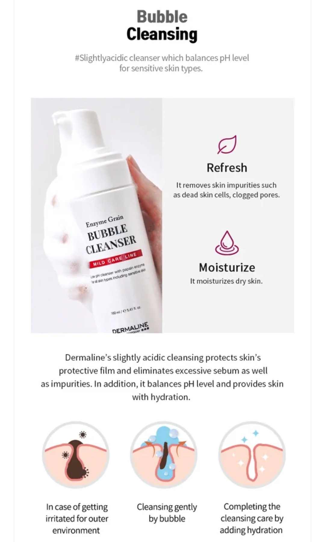Enzyme Deep Cleansing Foam yra pažangus profesionalus putojantis valiklis, skirtas giliai porų priežiūrai ir švelniam odos šveitimui. Formulė efektyviai pašalina nešvarumus, paslėptus po negyvomis odos ląstelėmis, padeda išvengti komedonų susidarymo ir palaiko sveiką odos balansą. DERMALINE ekspertų sukurta, šiek tiek rūgštinė pH formulė stiprina apsauginį odos barjerą ir saugo nuo kenksmingų bakterijų. Be sulfatų ir augalinės kilmės paviršinių medžiagų, putos švelniai valo visų tipų odą, įskaitant jautrią.